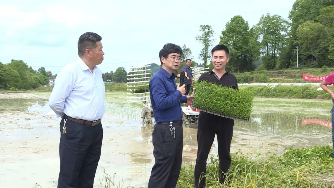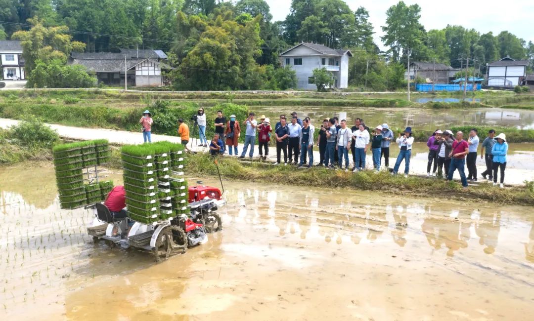 4月26日,湄潭县2022年稻油轮作水稻全程机械化插秧、两增一调技术现场会在永兴镇界溪村举行。