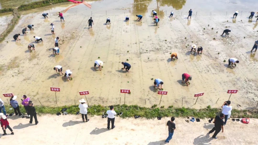 在现场,省农业农村厅水稻首席专家熊玉堂还围绕品种选择、药剂拌种育秧、移栽等环节,详细介绍了水稻“两增一调”核心技术。随后,在场专家亲自下田示范移栽,各镇街分管负责人和农技人员现场学习插秧技术后,纷纷卷起裤腿、撸起袖子“扎”进水田里插秧。